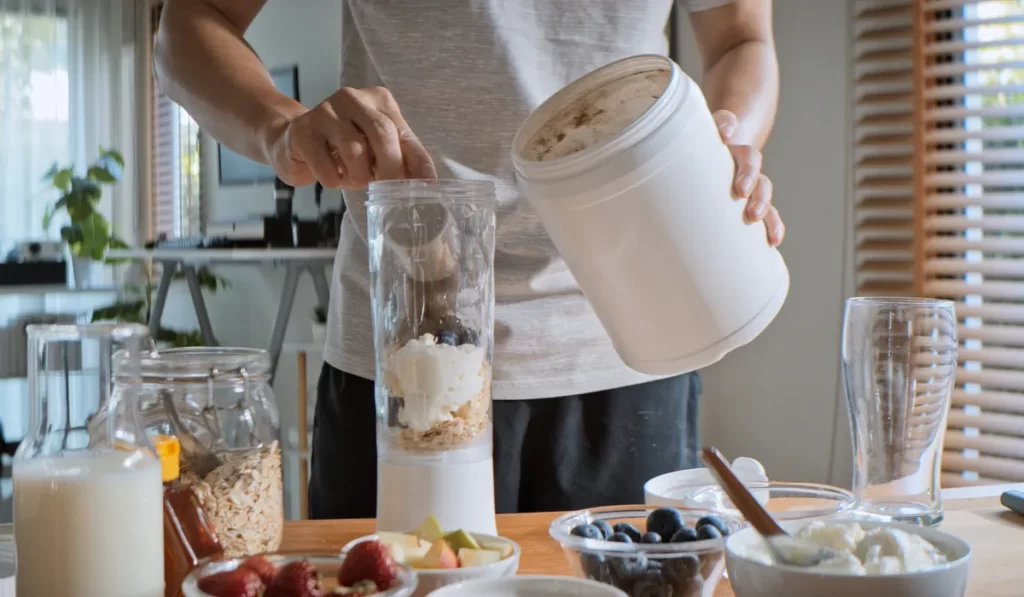 • Whey protein powder mixed with water, milk or a smoothie is a quick and convenient option.